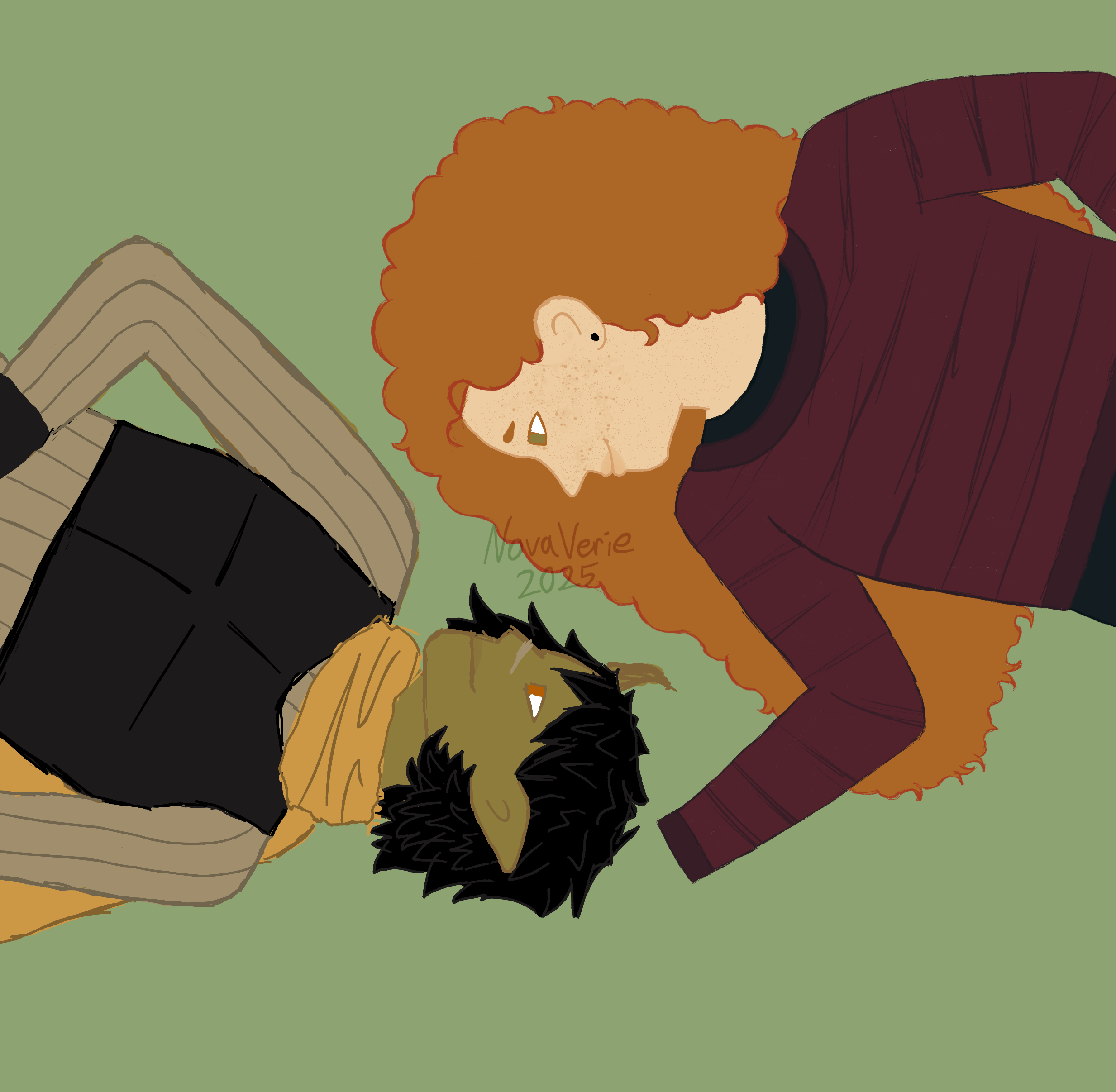 This is an unfinished Art Fight Attack. I hope to finish this eventually because I really love how it was turning out but I lost motivation when July ended haha. Character's are Esther Halloran and Cosmo , who belong to encryptidarchivist on Tumblr.