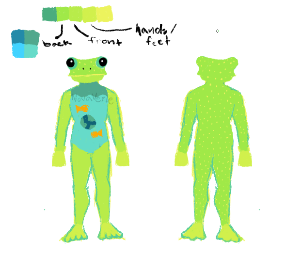 I've been poking at this character concept for a couple months now and finally made the first ref sheet for aem and have started working on real art of aem! Ae is a glass frog (yellow-spotted Cochran) with the insides of a liquid-filled computer mouse. Hopefully there will eventually be more art of aem here!